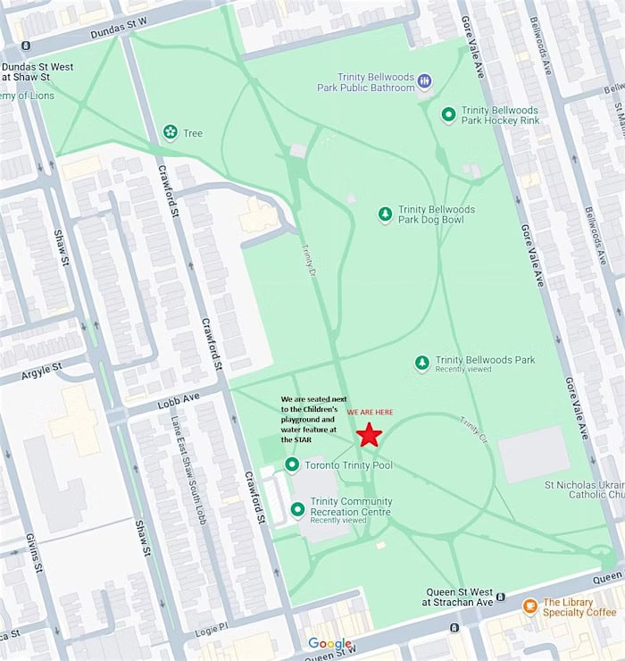 - Where: Trinity Bellwoods Park – 790 Queen St. W., Toronto (southwest side near Queen & Crawford, beside the community centre)